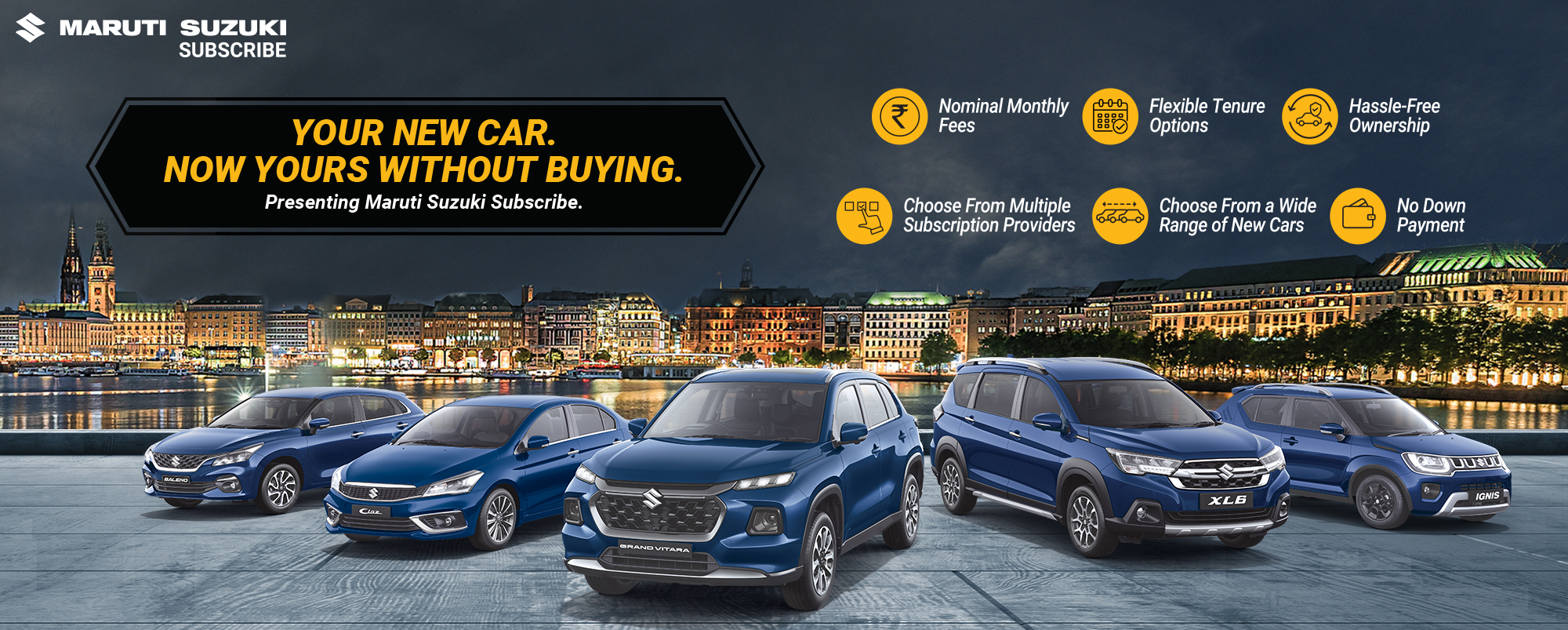Located in Nagwa College Road, Hindustan Auto Agency offers a plethora of options of Nexa cars for Maruti Suzuki Subscribe. You can choose your desired Maruti Suzuki car and drive it home at nominal monthly fees for a variety of flexible tenure periods. Whether you prefer Hatchback, Sedan, SUV or even MUV you are sure to find it at Hindustan Auto Agency, Nagwa College Road with an easy Maruti Suzuki Subscribe plan.